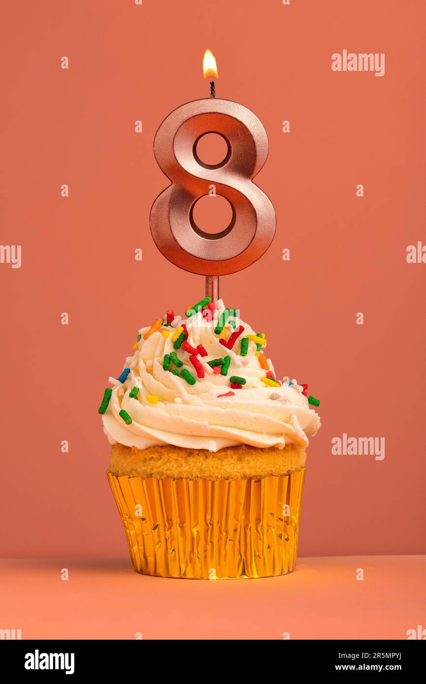 Candle Number 8 Cake Birthday In Coral Fusion Background Stock Photo Alamy