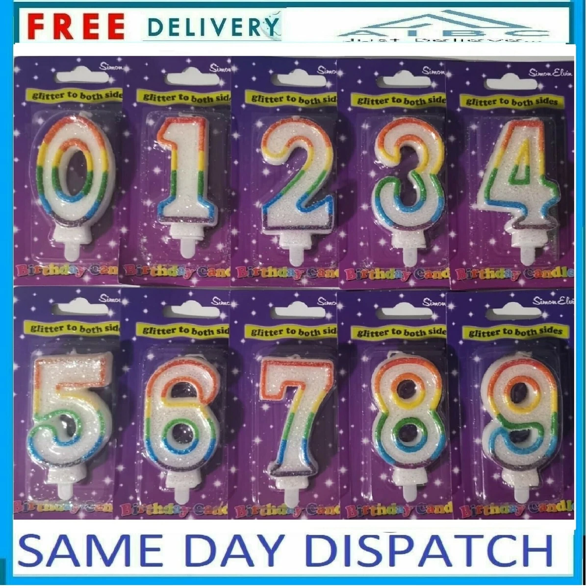 Glitter Number Candles Blue Pink Rainbow Number 0 9 Birthday Party Cake Ebay